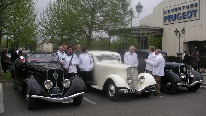 Ci-dessous lors de la manirestation organisée par l'Aventure Peugeot en 2010 pour les 200 ans de la marque trois 601 du Club01dont un rare cabriolet sur les deux survivants , l'autre est en Angleterre et aussi au Club01 ! Merci à mes amis Suzanna , Phil , Pierre et Alain (de dos) pour leur présence !